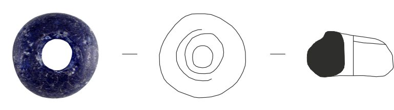 Vidro. Pasta vítrea opaca, de cor azul-marinho, de boa qualidade. Superfície ligeiramente corroída. (7.5PB1/4)