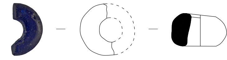Vidro. Pasta vítrea opaca, de cor azul-marinho, de boa qualidade. Superfície ligeiramente corroída. (7.5PB1/4)