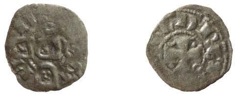 Anverso – D. REX [PORAV]GL – Cruz simples, equilátera, inscrita em orla de pontos a configurar a bordadura interna, com alargamento progressivo dos braços, acantonada com motivos alternados de estrelas e crescentes.