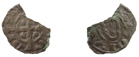 Anverso – REX SAN[CIVS] – Escudo de tipo português, carregado de besantes.