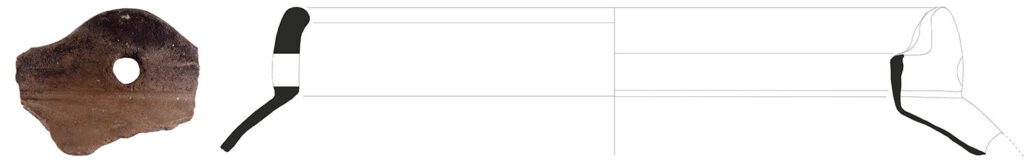 Fragmento de asa, bordo e arranque de parede de “panela de asa de orelha”.