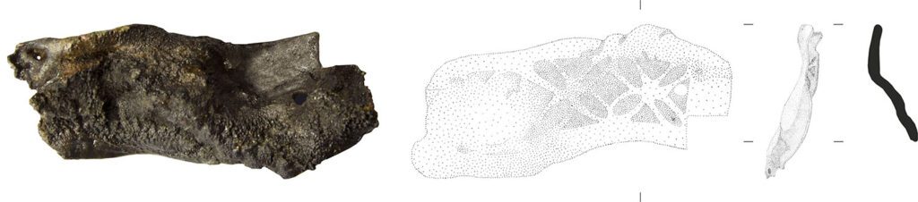 Devido à sua dimensão não se vincula diretamente com as placas das fivelas tipo Simancas, geralmente estreitas, que Pérez Rodríguez e M. Aragón relacionam com os “cingula” ultrapirenaicos da primeira metade do séc. IV (RODRÍGUEZ; ARAGÓN 1992). Também a sua decoração, formada por temas seriados, geralmente compostos por arcos, ferraduras e motivos serpentiformes, totalmente perfurados, as afastam do nosso exemplar, embora sejam evidentes as afinidades técnicas e estilísticas.